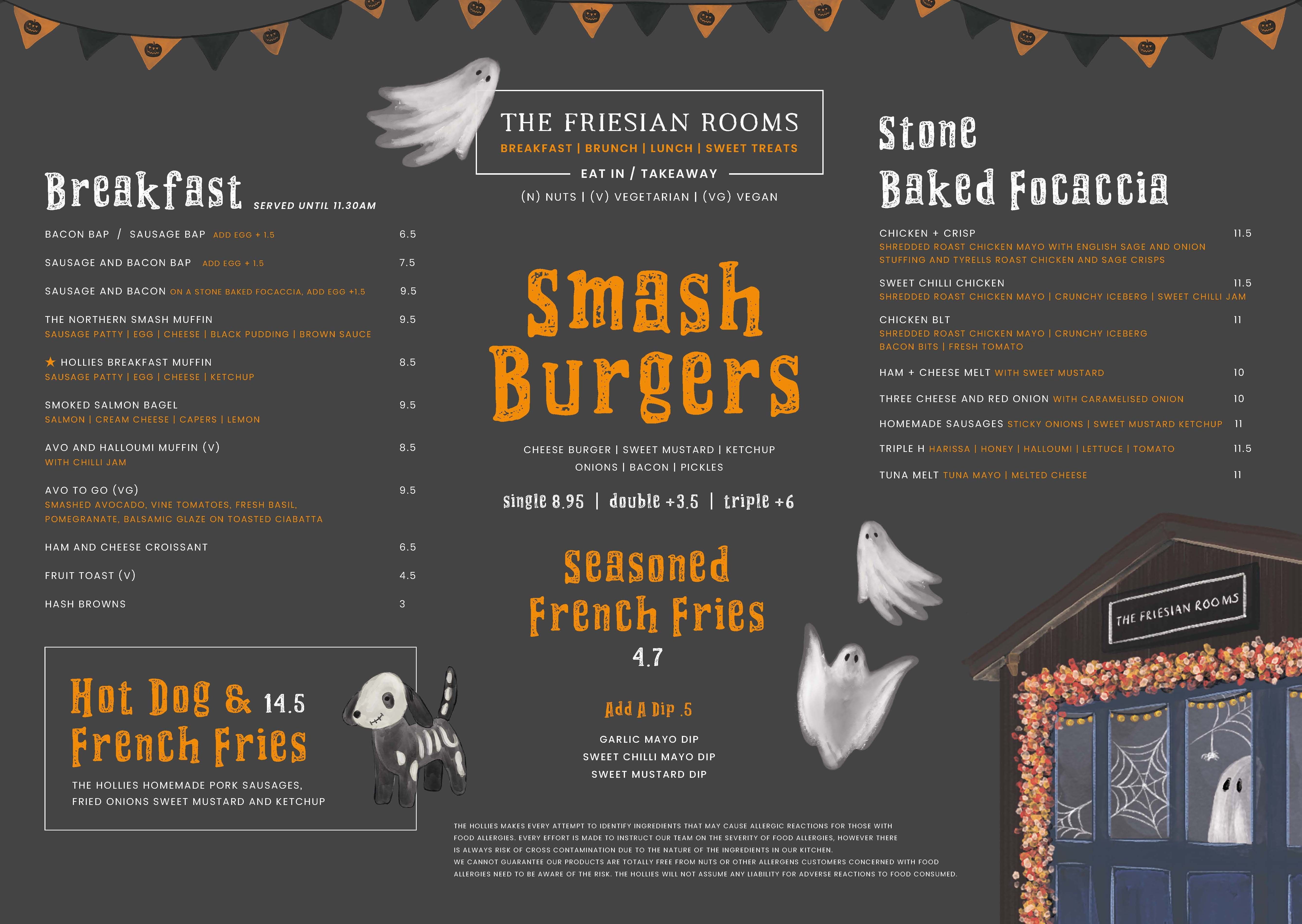 We are continuing with our Takeaway style food offering here at Little Budworth! We have a large outdoor terrace and outdoor covered gazebo area where dogs are welcome (we even have dog treats available to purchase with your coffees), plus a large indoor seating area to the left as you are facing the counter (we're sorry, with the exception of assistance dogs, no dogs are allowed inside here). We have just launched our new Halloween menu, which after some valued feedback from our lovely customers, has some tasty vegan options on, plus lots of your Hollies favourites!