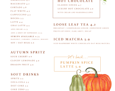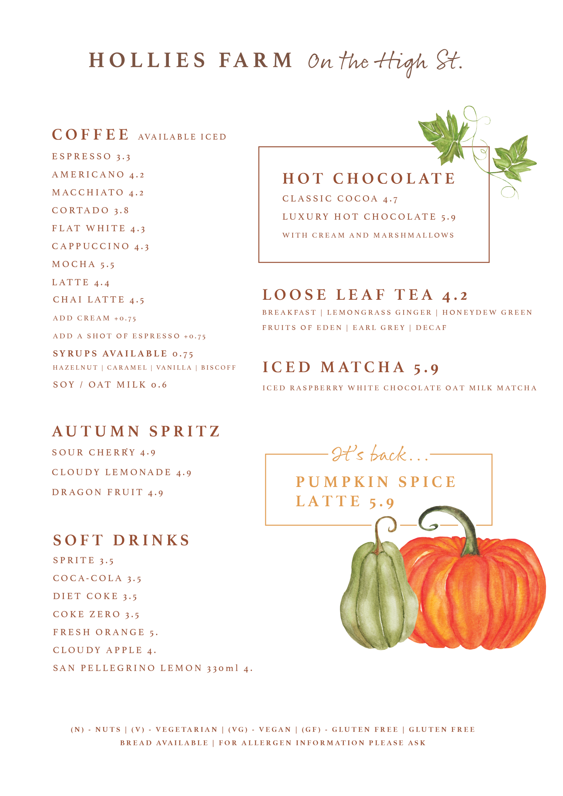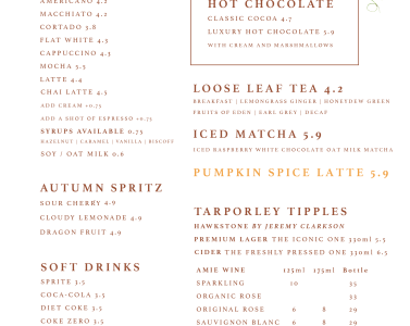 Coffee is available from the hatch from 7:30am (or earlier if we’re available!)