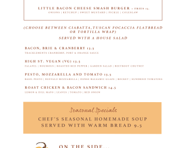 On weekdays we serve breakfast from 8am – 11.30am with our lunch menu then running from 11.30am – 3pm